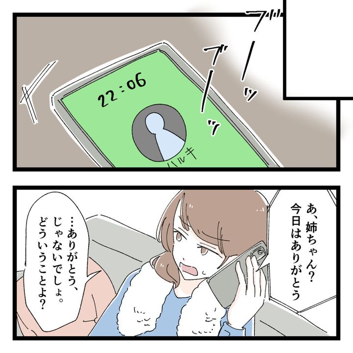 携帯がなり見るとハルキから。電話に出ると「あ、姉ちゃん?今日はありがとう」と言われ、「・・ありがとう、じゃないでしょ。どういうことよ?」と聞くと、