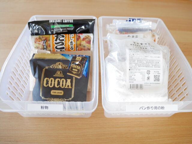 たこ焼きの粉やココアパウダー、パン作り用の粉など、たまにしか使わない粉物は、適当にしまうと存在を忘れがち。