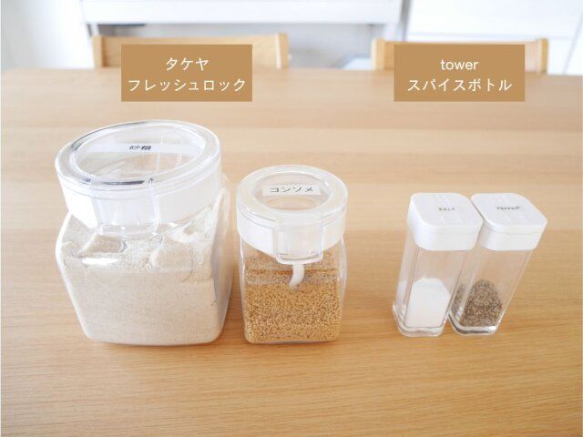 おすすめの保存容器は、「タケヤのフレッシュロック」「towerのスパイスボトル」