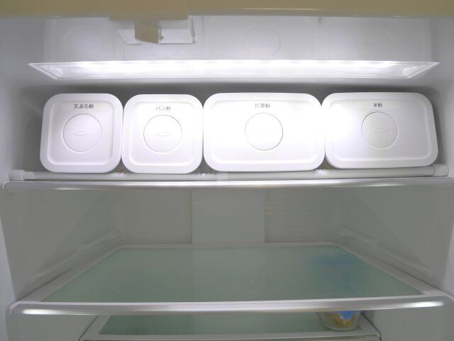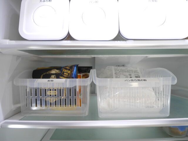 よく使う粉物は袋ごと容器に入れて冷蔵庫に収納