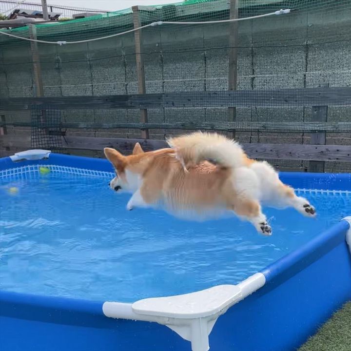 コーギーがプールにダイブ!その瞬間を捉えた写真が話題に「想像以上に飛んでる!」「いい構図ですね」