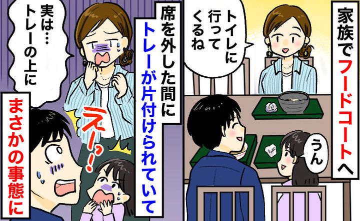 「捨てた!?」フードコートに戻るとトレーが片付けられ…思わぬモノまで消えていて絶句!衝撃の展開に