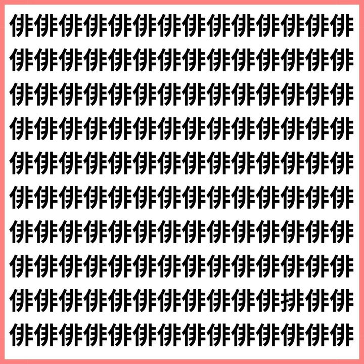 たくさんの「俳」の中に、1文字だけ違う漢字が混ざっています。