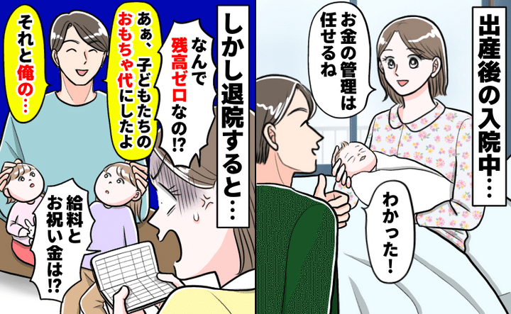 3人目を出産後、入院中はお金の管理を夫に任せていました。しかし、退院していざお金を下ろそうとすると、口座の残高がゼロになっていました……。