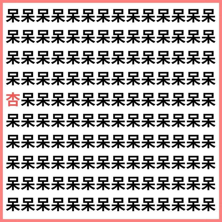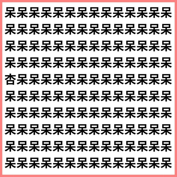 たくさんの「呆」の中に、1文字だけ違う漢字が混ざっています。