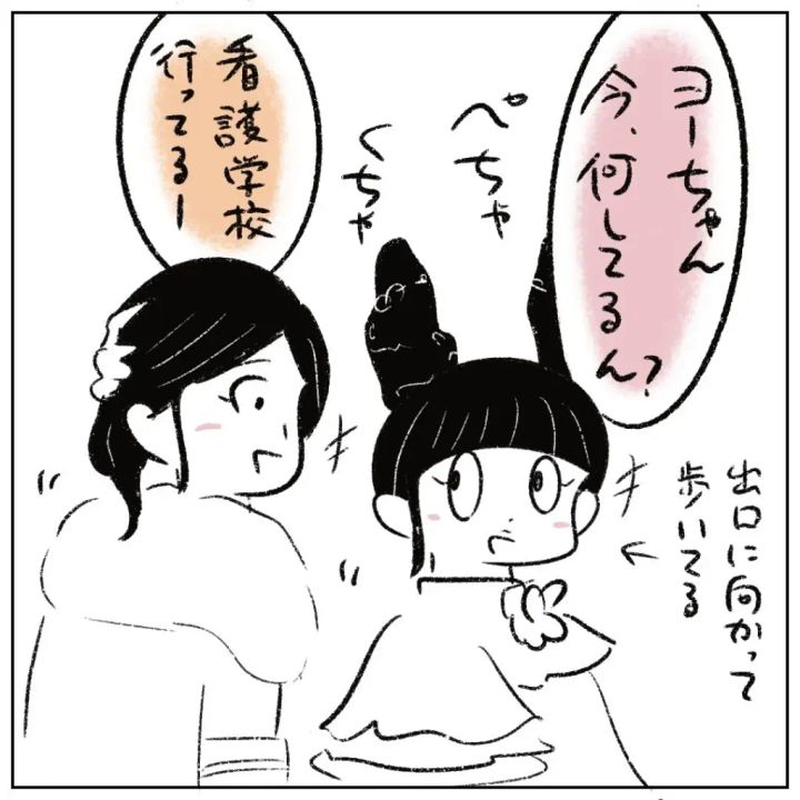 会場の出口に向かって歩きながら、「ヨーちゃん今、何してるん?」「看護学校行ってるー」などと近況報告をし合っていたまるさんとヨーちゃん。