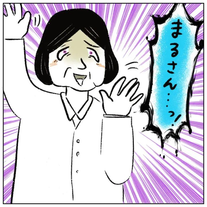 二人の前に出てきたのは年配の女性で、「まるさん・・っ!」と笑みを浮かべ手を振りながら嬉しそうにまるさんに声をかけてきました。