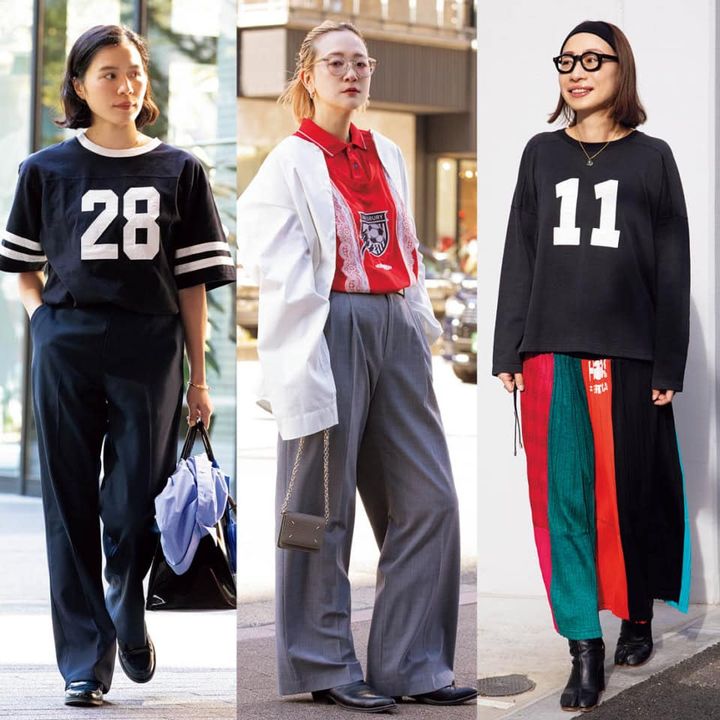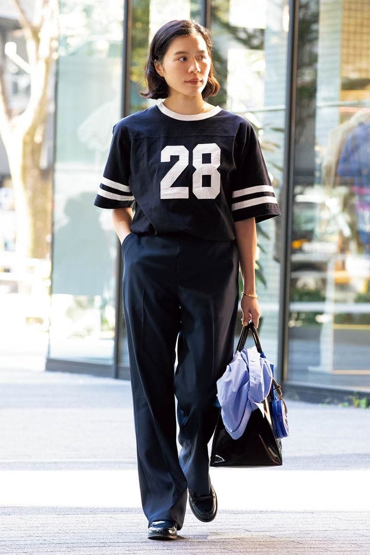 数字モチーフが1枚でインパクトのあるナンバリングトップス。スポーティな印象が強い分、モードなアイテムや女性らしいディテールなど、相反するテイストをMIXしたい。