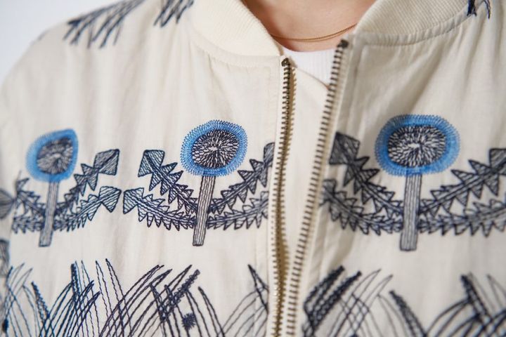 たんぽぽなどの雑草モチーフは、繊細なタッチの刺しゅうで描かれることで、遊び心と大人の品を両立。