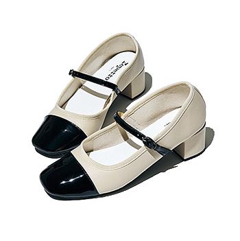 ストラップシューズ/レペット(ルック ブティック事業部) フェミニンな白レザーのメリージェーン。黒部分はパテントで、質感にも差をつけたことで、白ソックスを合わせたときもキリッと。