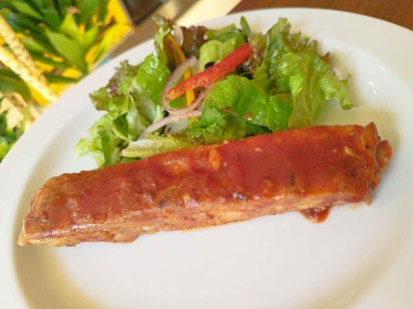 ポークリブBBQソース焼き(1本500円)もいただきました。「おうちで気取らずに手でつかんで食べてほしい」という松尾さんの思いから、こちらは、基本テイクアウトかUberEatsのみのメニュー。