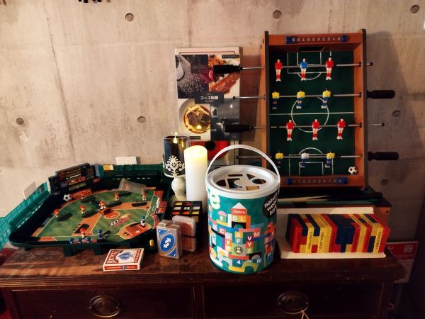 ダーツ、トランプ、UNO、ボードゲーム、野球やサッカーゲームなどが置いてあり遊べます。ランチとデザートを注文して3~4時間滞在する女子会としてや、習い事のグループが“後練”場所として集っていたりするそう。知る人ぞ知る大人の秘密基地のようなサロン場所となっているようです。