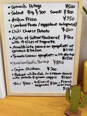 メニューには、パスタ、ナチョス、タイ風カレー、ケイジャンチキンなど、様々な国の多国籍料理が並びます。どれも、代表の松尾直子さんが腕によりをかけて丁寧に手作りされた料理ばかり。