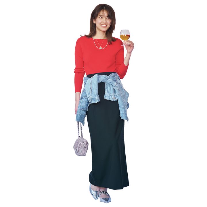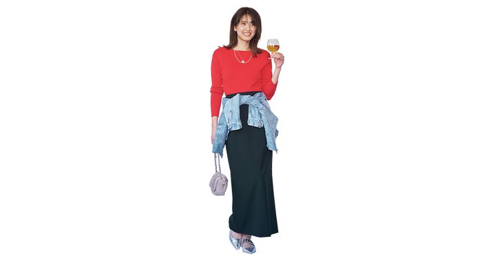 大人の余裕は“Gジャン腰巻き”で作る!サマーニット×黒ロンスカの都会派スタイル