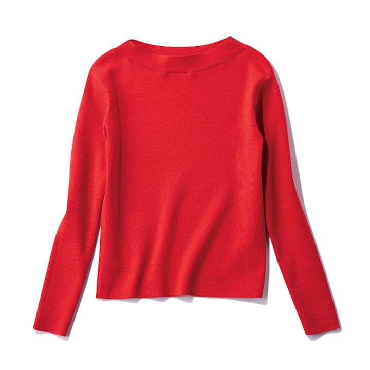 一枚で着映えるサマーニット。リブニット¥22,000(マルモア/DMC)[ハンドウォッシャブル/清涼感と、ほどよいハリ感、吸湿性でシワになりにくい]