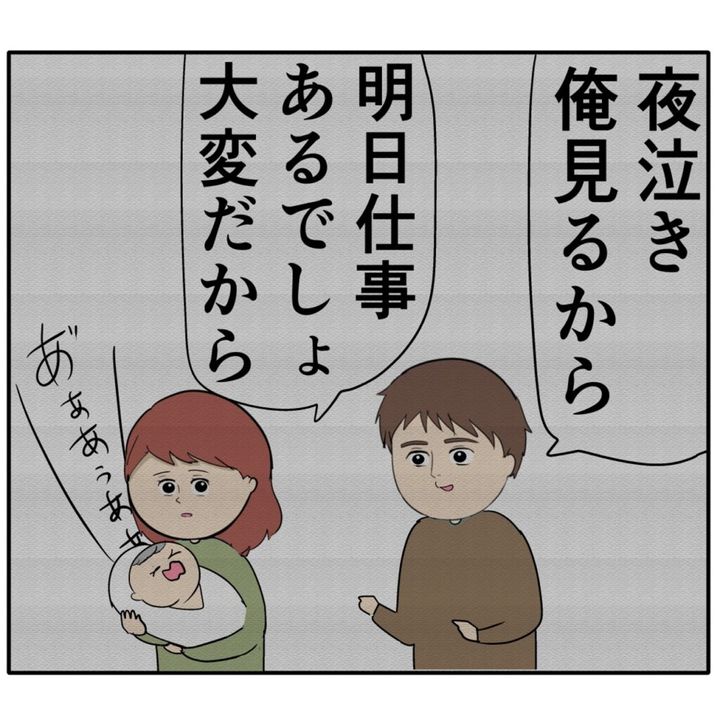 めいさんに気持ちを伝えながら、ろみ緒さんはこれまでの結婚生活を振り返っていました。あかりちゃんが生まれたばかりの頃、慣れない育児で疲れているめいさんに「夜泣き俺見るから」と言うと「明日仕事あるでしょ。大変だから」と自分のことよりもろみ緒さんの体調を心配してくれためいさん。