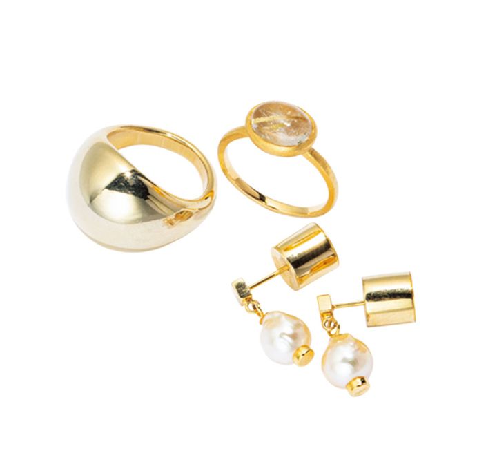 主役級の存在感を放つチュニック丈のブラウスとIラインのワンピースをレイヤードして柔らかい雰囲気に。パールとゴールドのアクセで女性らしい好感度もアップ。トレンドのシアーサンダルで足元に抜け感を意識して全体的にスッキリとバランスよく仕上げました。