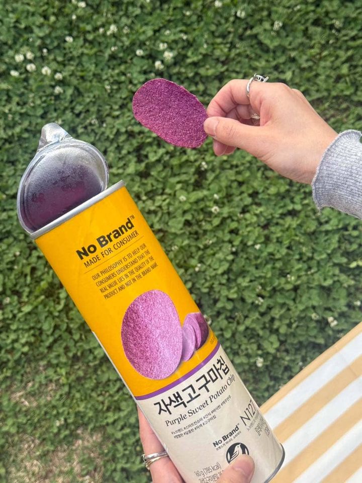中村「韓国のおみやげの定番! 韓国の大型マート『eマート』のオリジナルブランド『No Brand』のポテトチップスは外せません。紫さつまいもを使用した色鮮やかなチップスで、ちょうどいい甘さとしょっぱさが合わさって、食べれば食べるほど美味しい。手が止まらなくなるとはまさにこのこと!」