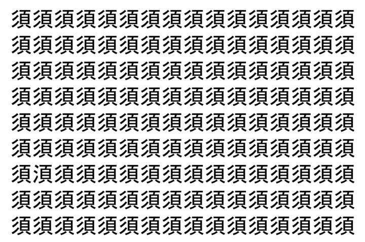 2. 【脳トレ】「須」の中に紛れて1つ違う文字がある!?あなたは何秒で探し出せるかな??【違う文字を探せ!】