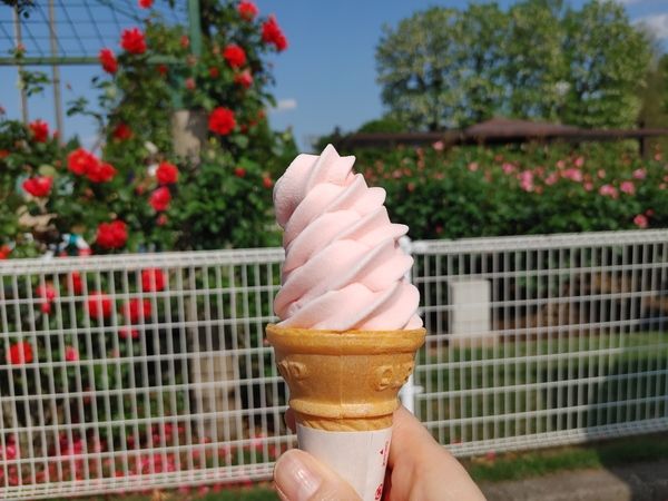 バラをたっぷり堪能して出店をのぞくとバラのソフトクリームが販売されていたので、早速頂いてみました♪