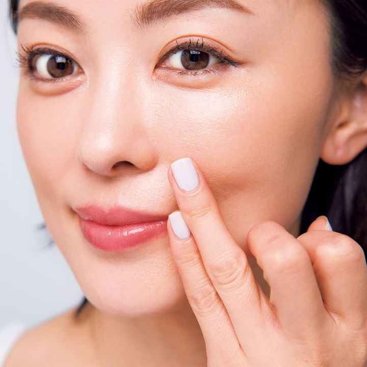乾燥しがちで赤みが出やすい目元、小鼻周りやマスクかぶれをしやすい箇所にトントンと指先で馴染ませる。