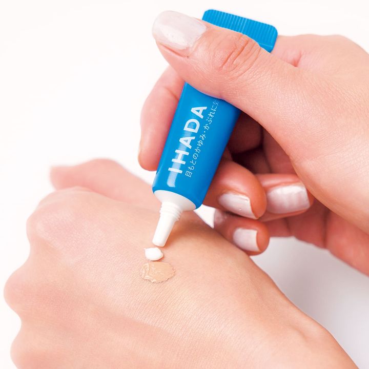 手の甲に1:1の割合で出して混ぜる。肌荒れ防止成分入りの下地の使用がオススメ。