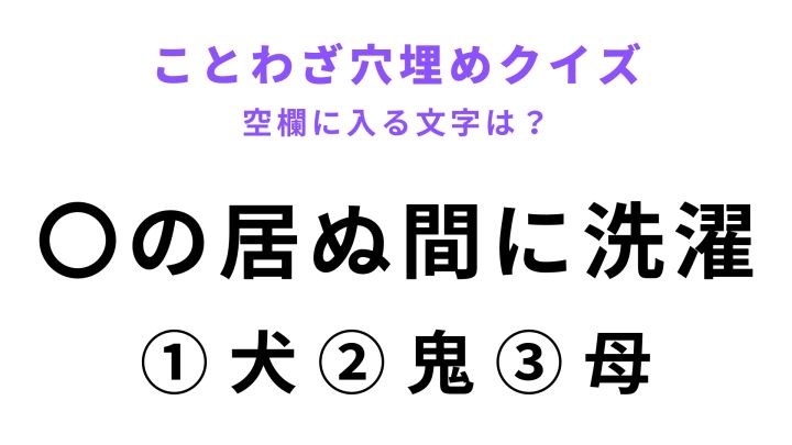 ことわざ「〇の居ぬ間に洗濯」には、なんの文字が入る?