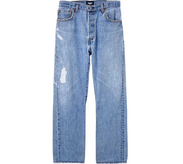 ポケットの縁にあしらわれたスタッズがポイント。ヴィンテージライクなムードも人気の秘密。デニムパンツ¥52,800(ジニー ブルー/ウィム ガゼット ルミネ新宿店)