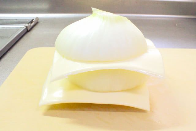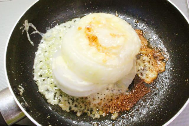 今回試してみる「世界一旨い玉ねぎの食い方」は、3等分にした玉ねぎにスライスチーズを挟んで蒸し焼きにしていました。とろっと溶けたチーズをかけた玉ねぎは食欲をそそるビジュアル♪