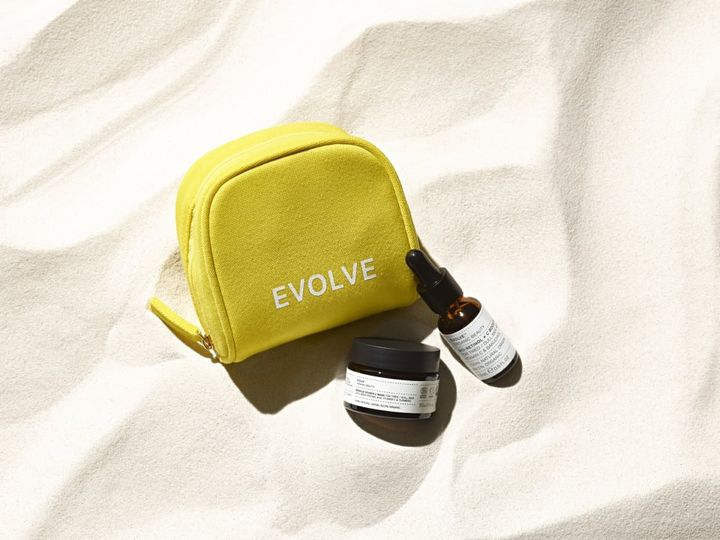 EVOLVEでは、肌質や悩みに合わせて選べる多彩なラインナップを展開していますが、初めての⽅には、ブランドの⼈気アイテムをお得に試せる夏限定のスペシャルキットがオススメ。ビタミンC 誘導体や、サトウキビ由来のグリコール酸を含むAHA ブレンド配合のジェリー状マスクは、洗い流した直後から肌を明るく整えます。また、4 種類のビタミンと保湿成分がつややかな肌へ導くオイル美容液もセットに。どちらも、リサイクル素材で作られたオリジナルポーチに収められています。