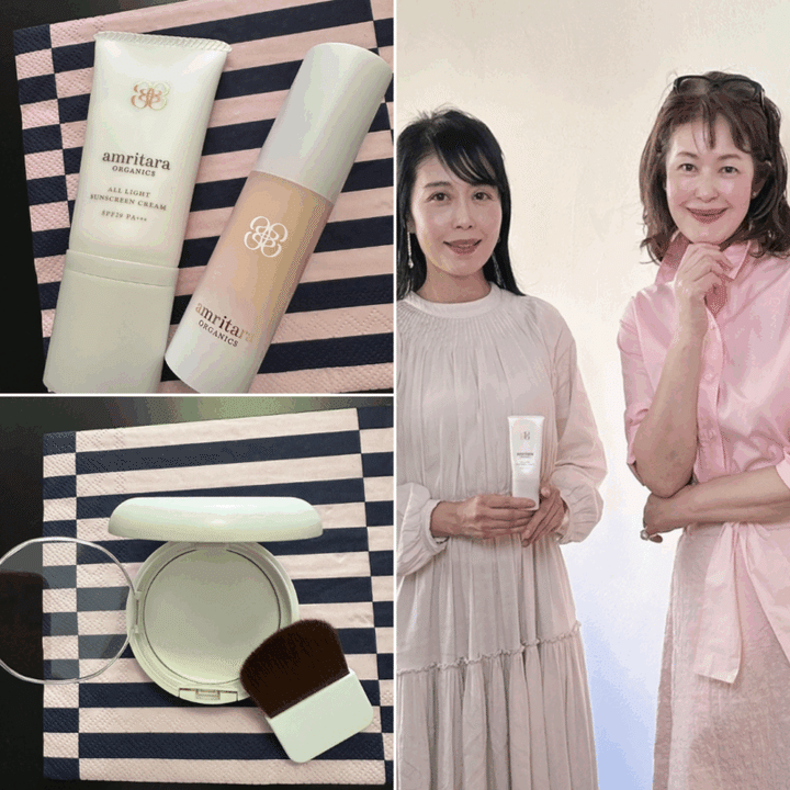 そろそろ紫外線が気になってきましたね。5月の紫外線はもう真夏クラス。UVケアも本気ださなくては、です。 年々、酷暑となり私は2年前の夏、草取りをしていたら日光アレルギーになってしまいました。赤く腫れて痛みと痒み、唇はタラコのようになってリップクリームさえも痛く…… もう太陽がコワイ、恐怖! スキンケアは刺激のないものへとチェンジしました。先日はお勉強のために、ナチュラルコスメ『アムリターラ』の次世代設計のオーガニックUV “抗光老化のあくなき挑戦“というイベントに参加して、役に立つ情報が盛りだくさんでしたので素敵ブログにシェアいたしますね。 私にとっての美容って紫外線と乾燥から“守る”ことですが、保湿にはいいものがたくさんあるけれど、日焼け止めって結構ジプシーしませんか? 肌が白く厚く塞がれ息苦しくなるようなものが多くて……それって老け見えしちゃうから危険ですよね! ジプシーを続けていたら最近日焼け止めもアップデートされて、いいものにたくさん出会えています。 私は光対策には優しいものを、そしてシミは頬にできる。だから頬のケアも重要ポイントだと思っています。ちょっと自慢ですが私まだシミができたことないのです。 というわけで、素敵ブログVol.8は私の愛用UVケア商品のご紹介をさせてください♡