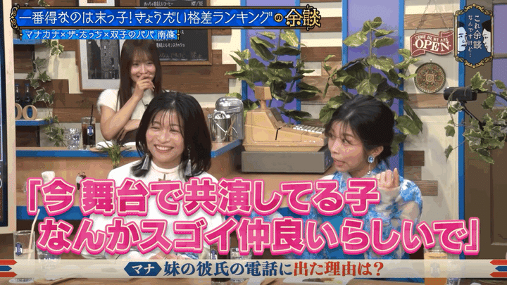 なお、このマナカナの恋愛エピソードは、5月7日に放送されたバラエティ番組『これ余談なんですけど・・・』で明かされた。