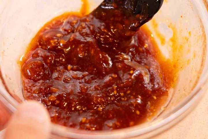 3、<B>の材料を混ぜ合わせ、つけだれを作る。