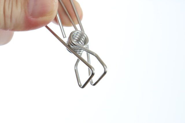 ステンレスピンチのサイズは約全長9.6×幅1.8×奥行4.3cm。使い方は一般的なピンチと同じで、耐荷重は150gまでとなっています。