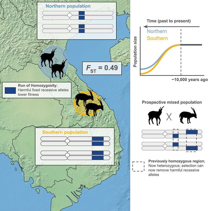 しかし良い知らせとして、サオラには北部と南部の2つの遺伝的に異なる個体群が存在することが判明しました。