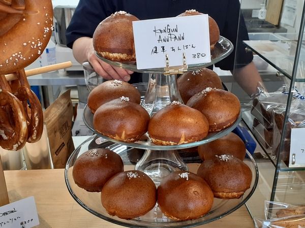 NEVLの名物「健軍あんパン」。これは単なるパンではなく、プレッツェルの中につぶあんとクリームチーズを閉じ込めた、まさに革新的な組み合わせです。プレッツェルの塩気とあんこの上品な甘さが絶妙に交差し、一度食べれば忘れられない味わいとなっています。