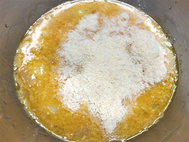 4. 粉チーズを加えて混ぜます。