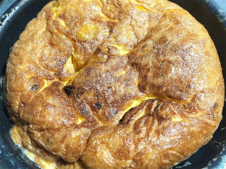 オムレツという呼び名はフランス料理のオムレットから来ていますが、卵を溶いて焼く料理は世界中にあります。味付けも塩とこしょうだけのシンプルなものから、中にいろいろな具を入れて焼くものまで幅広く、国や地域によって全く味が異なる料理です。ホテルの朝食ブッフェでは、シェフが目の前で手早く焼いてくれたものを温かいうちに食べるという贅沢な提供の仕方もよく見かけますし、このレシピのようにじっくりと焼いて食べるものまですべて、同じオムレツという呼び名で呼ばれるのは不思議な気もします。ちょっと料理が残ってしまったときなどに具として中に入れるだけでオムレツができてしまうところなど、卵の持つ包容力は食材の中で随一なのではと思います。