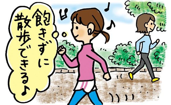 音楽を取り入れてから散歩中に感じていた物足りなさがなくなり、家に到着してから爽快感を感じるようになりました。そして、長い間しまい込んでいた万歩計を引っ張り出してきて交通量や人通りの少ない道を選んで1日1回30分以上3,000歩以上を目安に歩いています。