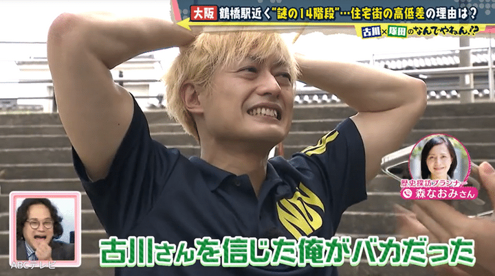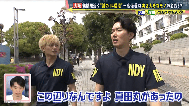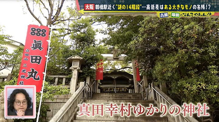 大阪のJR鶴橋駅近くの住宅街には、謎の14段の階段がある。この“謎の14階段”は、NHK大河ドラマ『真田丸』と関係があるのか、それとも……? ABCテレビの古川昌希アナウンサーが、A.B.C-Zの塚田僚一と謎解きをする中、なんと謝罪する事態に……!