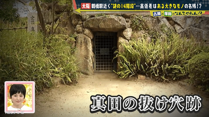 やがて真田山公園にたどり着いた古川アナは、2016年放送の大河ドラマ『真田丸』を思い出した。真田丸とは、真田信繁(幸村)が築いた大阪城の出城のことで、戦国時代最後にして最強の砦として知られている。その真田丸があった場所が、真田山公園付近と言われている。同公園の近くには、真田ゆかりの神社・三光神社があり、その敷地には大阪城から真田丸まで通じたという秘密の抜け穴の跡もあった。
