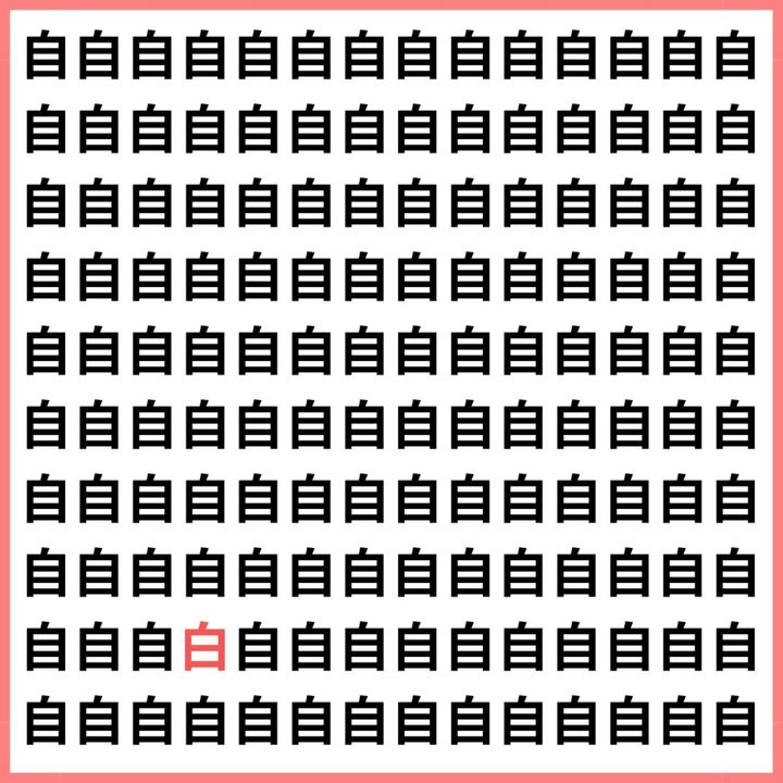 たくさんの「自」の中に、1文字だけ違う漢字が混ざっています。