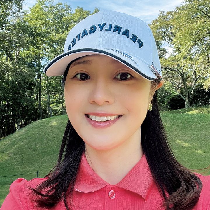 月に3〜4回はラウンド。自然の中で日差しを浴びる心地よさを楽しみながら、シミ対策をするのがモットー。日傘と帽子をフル活用。