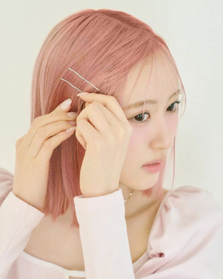 帽子から出したい量の前髪だけ残し、それ以外は左右センターで分けてこめかみにピンでとめる。帽子をとっても可愛く映えるシルバーピンがおすすめ。