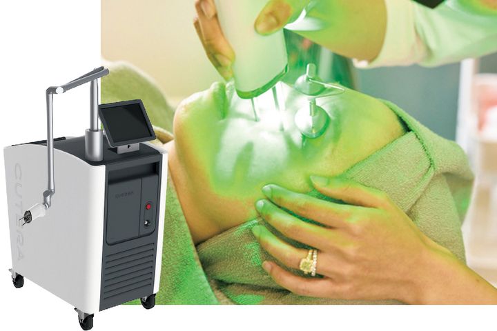 エンライトンピコレーザーで薄いシミに照射。ピコトーニングも人気ですがリバースピールのほうが肌のトーンは早くアップ。ピコの登場によりシミ治療はテープ要らず。1回で取りきれなかったシミには複数回の治療が必要。