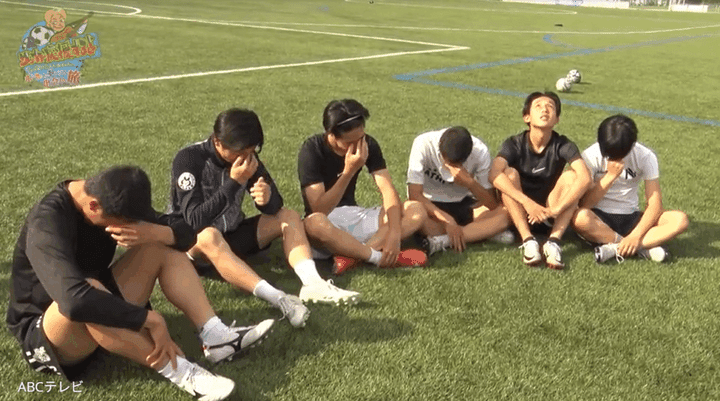 パフォーマンス終了後のしんいちからも、すすり泣きのような声が。さらにしんいちは、声を上げて号泣!? …かと思いきや、「はい、OK!」と叫んでニッコリ。泣くフリをしていたユース生たちとタッチを交わし、「感動しましたね!」とカメラに笑顔を向けた。