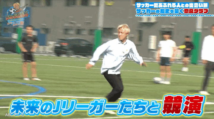 そんなしんいちは、奈良クラブの練習場・ナラディーアへ。注目のプロ選手にインタビューした後は、ユース生たちと本気でサッカーを楽しみ、彼らのために応援ソングを歌った。