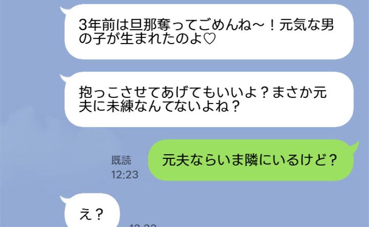 「3年前は旦那奪ってごめんね~! 元気な男の子が生まれたのよ♡」