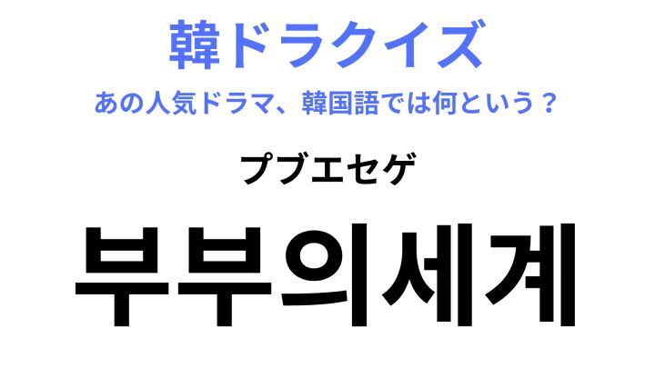 いったい、「부부의세계(ブエセゲ)」はどういう意味なのでしょうか。