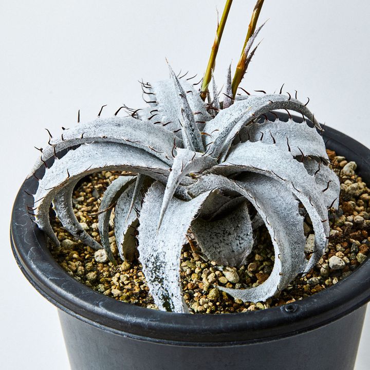 ブラジル、ゴイアス州に自生。肉厚な葉はトリコームに覆われ、一際白さが際立つ。鋸歯は赤茶~黒の針状になる。他のディッキアと比べて根が繊細。冬を考慮すると、光源を準備した室内管理が望ましい。